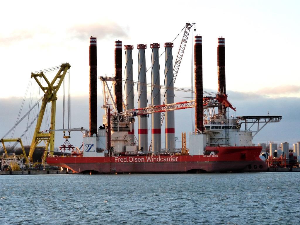 Sassnitz-Mukran, 05. Januar 2017 – Das Installationsschiff „Brave Tern“ des Offshore-Windkraftprojektes „Wikinger“ hat den Mukran Port angesteuert und im Bereich des Liegeplatzes 3a zur Verladung der Windkraftkomponenten aufgejackt.