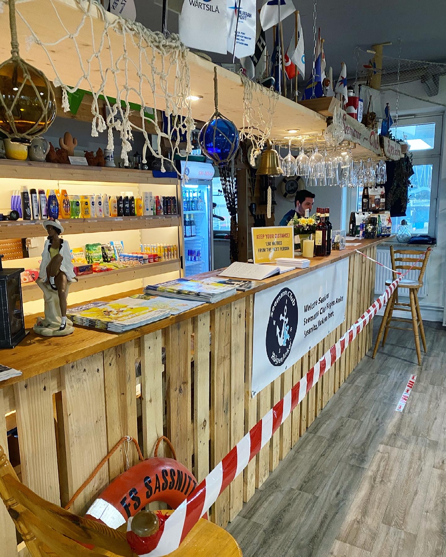 Aufgrund von COVID-19-Einschränkungen, darf der Club’s Shop nur zum Abholen von Artikeln geöffnet werden, die vor Ort erworben oder per E-Mail Sassnitz-Seemannsmission@gmx.de zum Abholen bestellt werden können. Das Aufhalten im Club ist leider nicht möglich.