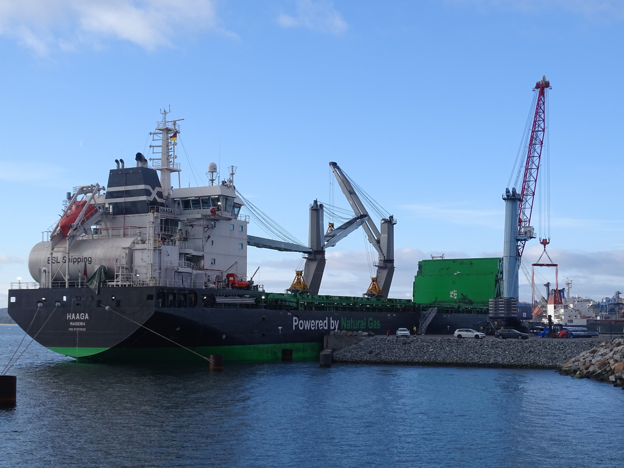 Sassnitz-Mukran, 31. Januar 2019 — Erstmals in der Hafengeschichte sind gleichzeitig drei Handysize-Stückgutschiffe im Mukran Port abgefertigt worden. Als Handysize werden Schüttgutfrachter bezeichnet, die über eine Tragfähigkeit von 15.000 bis 35.000 Tonnen verfügen. Damit hat der Hafen seine Leistungsfähigkeit auch im Stück- und Massengutsektor unter Beweis gestellt. Das moderne Stückgutschiff „Haaga“ mit LNG-Antrieb erlebte seine Premiere am Mukran Port Terminal. Die Stückgutladung aus Russland wurde per Eisenbahn ins Hinterland weitertransportiert. Die Organisation und Durchführung der Blockzug-Nachläufe lag in den Händen der hafeneigenen Bahngesellschaft Baltic Port Rail Mukran GmbH. Die beiden anderen Schiffe, die „Nordschelde“ und „Charlie“, bedienten die örtliche Industrie im Im- und Export. Mukran Port konnte bereits eine positive Bilanz für das Jahr 2018 ziehen, das vom Offshore- und Massengutumschlag geprägt war. Nach diesem gelungenen Jahresauftakt mit intensiver Beschäftigung an den Umschlagterminals blickt der Hafenbetreiber nun auch zuversichtlich ins Geschäftsjahr 2019. „Wir gehen davon aus, dass das derzeit hohe Arbeitsaufkommen ein Vorzeichen für die weitere Entwicklung des Mukran Port im Jahr 2019 ist. So wollen wir die gut laufenden Projektgeschäfte weiter ausbauen und zugleich die Industrieentwicklung im Hafen vorantreiben. Auch bei der Umschlagsmenge insgesamt rechnen wir mit einer Steigerung unter anderem im Agrarsektor“, sagt Harm Sievers, Geschäftsführer Mukran Port.