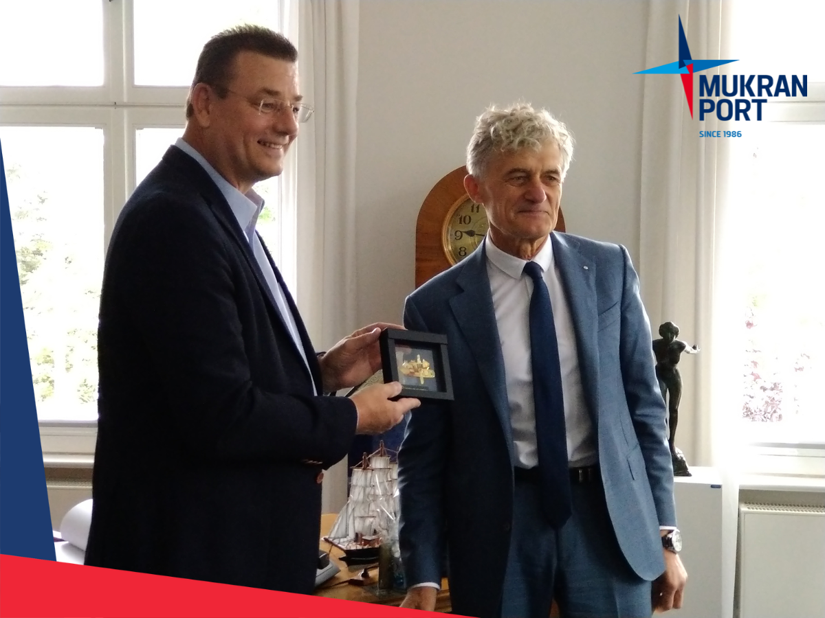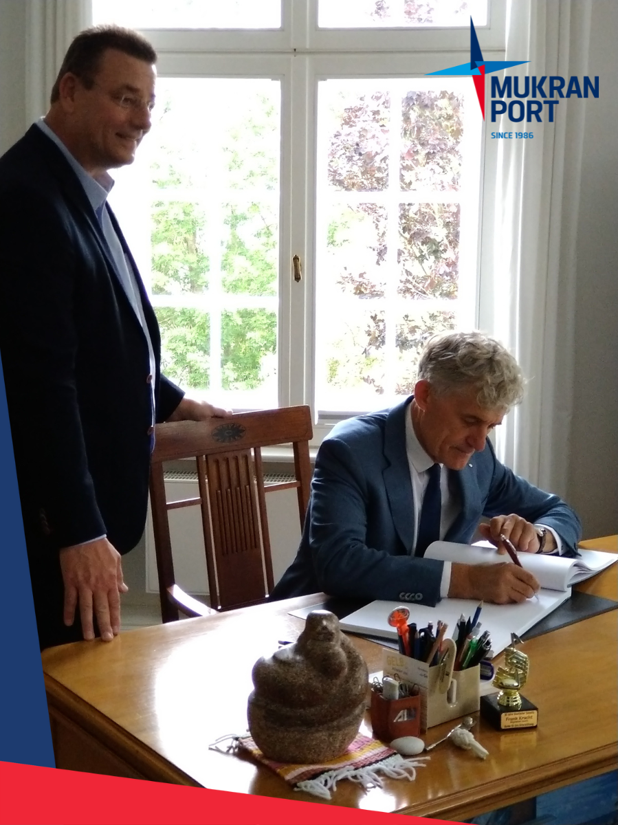 Sassnitz - Mukran, 15. Juli 2022 — Vertreter des Hafens Klaipeda sind zu Gast im Mukran Port, um sich mit Experten zum Thema Offshore Wind Energie auszutauschen. Neben einem gemeinsamen Workshop und einer Networking-Veranstaltung gab es auch einen Besuch im Rathaus der Stadt Sassnitz. Zwischen beiden Städten besteht eine langjährige Städtepartnerschaft.