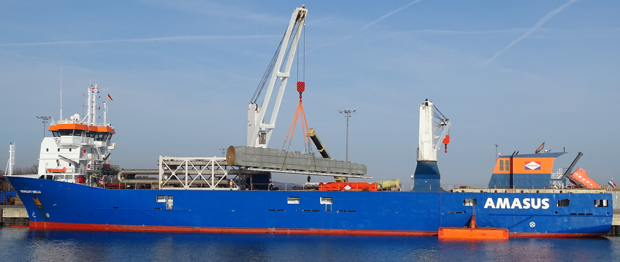 Mit der Errichtung einer Kühlanlage für eine Siliziumfabrik im norwegischen Holla ist die Kraftanlagen München GmbH beauftragt. Die Baustelle vor Ort bietet jedoch nur begrenzt Flächen. Die Fertigung erfolgt daher in modularer Bauweise. Als Standort für die Vormontage der Schwerlastteile wurde der Mukran Port gewählt, auch auf Grund seines direkten Tiefwasserzugangs zur offenen See.