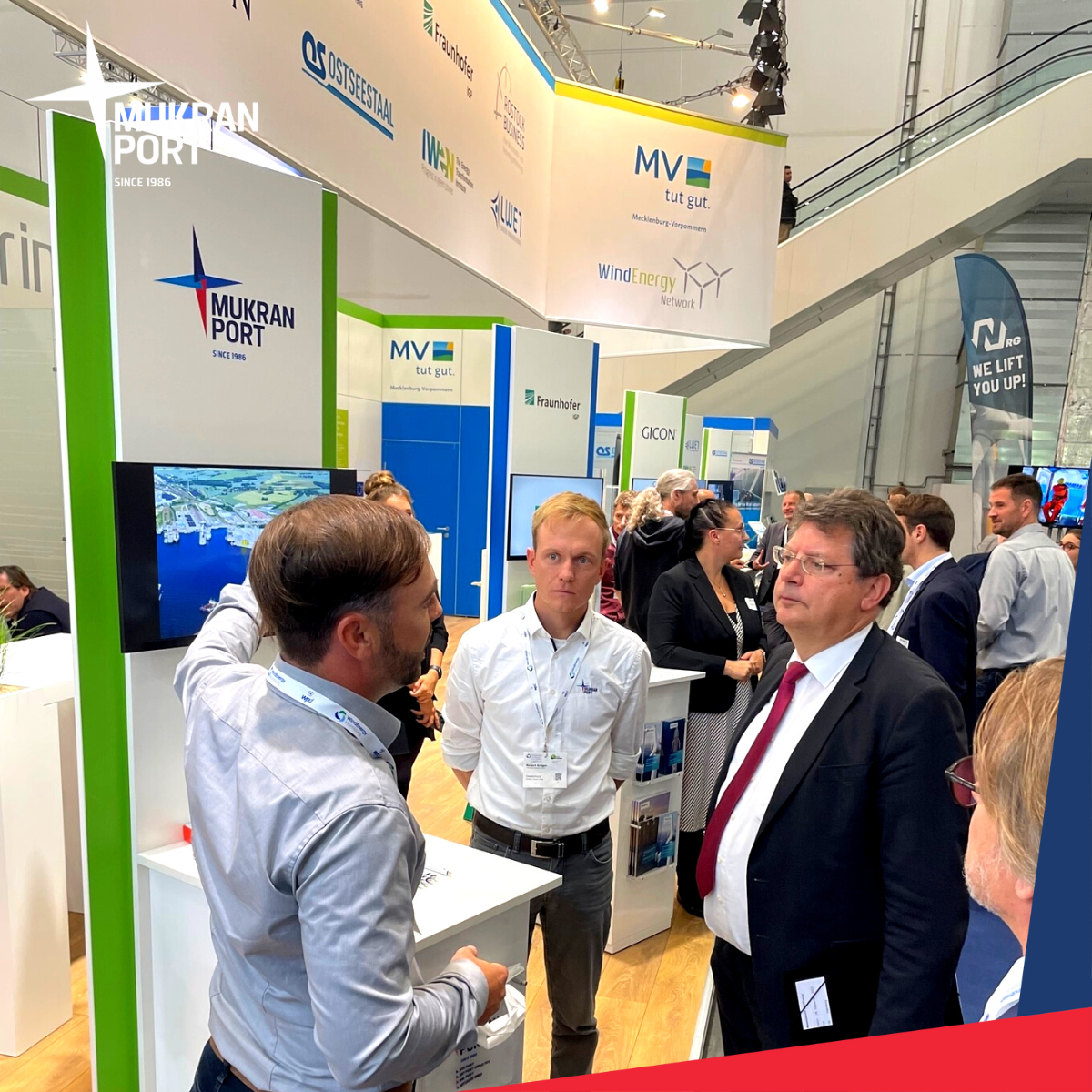 Sassnitz - Mukran, 04. Oktober 2022 — Mukran Port auf der Wind Energy Messe in Hamburg vertreten. Bei dem Expertentreffen der Off- & Onshore Wind Energy Branche wurden zahlreiche Gespräche geführt. Auch der Minister für Wirtschaft, Infrastruktur, Tourismus und Arbeit von Mecklenburg – Vorpommern besuchte den Mukran Port Ausstellungsstand.