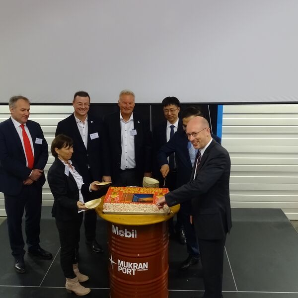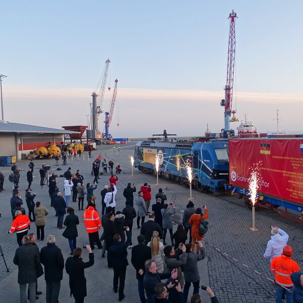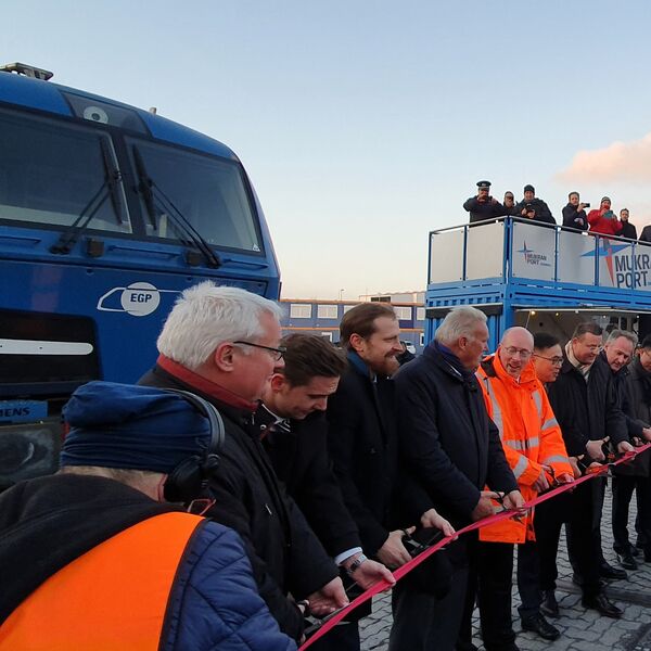 Sassnitz-Mukran, 12. November 2019 — Die ersten zwei direkten Güterzüge zwischen China und Mecklenburg-Vorpommern trafen sich am Dienstag, den 12.11.2019 im Mukran Port. Der ostgehende Zug ging mit 48 Container auf die Reise. Der westgehende 640m lange Güterzug startete seine 10.000 Kilometer lange Reise mit 42 Containern in Xi´an China über Kasachstan, Russland und Weißrussland nach Baltijsk in Kaliningrad, wo die Container auf einen Short Sea Carrier umgeladen wurden. Im Hafen des Mukran Port wurden die Container vom Schiff erneut auf Schienen verladen vom Team der Mukran Port Terminals GmbH & Co. KG. Im Mukran Port wurde dann mit allen Beteiligten der neue Korridor der chinesischen Seidenstraßeninitiative feierlich eröffnet.