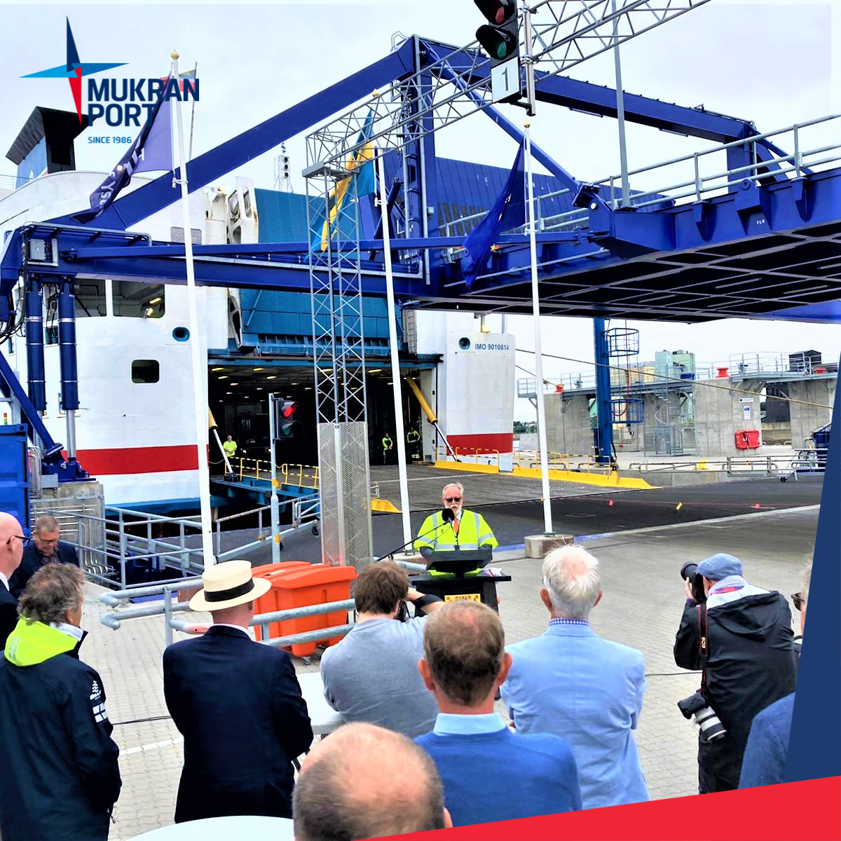 Sassnitz-Mukran, 29. August 2022 — Mukran Port visits Ystad Port for the official inauguration of the new ferry terminal with berths 7 and 8. After the welcome by Mayor Paula Nilsson and Port Ystad Managing Director Björn Boström, the Mukran Port plaque was presented. The capacity of the port has been expanded with the two new berths and are suitable for ships up to 250 meters. The newly gained terminal area is around 140,000 square meters.