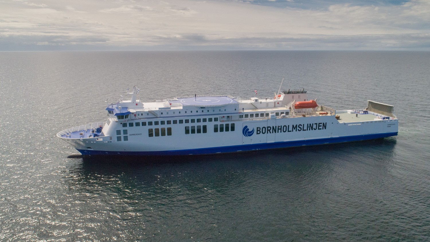 Sassnitz-Mukran, September 07 , 2018 - The danish shipping company Molslinjen took over the only direct ferry connection between Mukran and Roenne on 01 September 2018. This was the first change of operator on the route after 150 years. The shipping company Molslinjen offers the connection under the name Bornholmslinjen. The traditional area of passenger shipping in Mukran is to regain importance in the future and boost tourism on both islands. To illustrate these goals, the shipping company had a new ship built especially for this route. The 158 meter long "Hammershus" offers space for 720 passengers and thus twice as many as was possible with the old operator, the passenger car capacity also increases. "In recent years, we have proven that tourism and an industrial and business location are not mutually exclusive. Thanks to our favourable geographical location and the existing infrastructure, large passenger ships can also call at the port in addition to huge installation vessels for the construction of wind turbines," emphasised Thomas Langlotz, Commercial Director of Mukran Port. In addition to year-round ferry traffic, 5 times a week in summer and 3 times a week in winter, ticket prices also fall significantly.