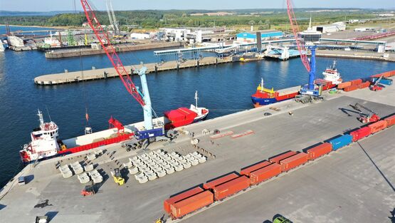 Industrie- und Anlagenbauer finden bei uns ideale Bedingungen und Platz für ihre Ideen. Vom größten Vorhaben bis zum kleinsten Projekt ist bei uns auf 80 ha alles möglich. Direkt an der Kaikante halten wir zusätzlich Schwerlastflächen für bis zu 50 t/m² frei. Diese sind ideal, wenn Sie kurzfristig ein Projekt umsetzen wollen oder nur temporär Platz brauchen. Weitere Flächen für schwere und sperrige Güter warten im Hinterland auf Ihre Pläne. Wenn Sie in kurzer Zeit sehr viel produzieren, haben wir für Sie außerdem große Lagerflächen. Speziell Betonbauer schätzen die Silokapazitäten unserer Netzwerk-Partner vor Ort. Für das Handling großer, sperriger und schwerer Bauteile, beispielsweise aus Beton, stehen Ihnen auf unserem Areal außerdem spezielle Kräne und anderes Equipment zur Verfügung. Nicht zu vergessen: unsere direkte Anbindung an den Mukran Port. So können Sie bei uns sämtliche Prozessschritte realisieren - von der Vor-, Zwischen- und Endmontage bis zum Verschiffen.