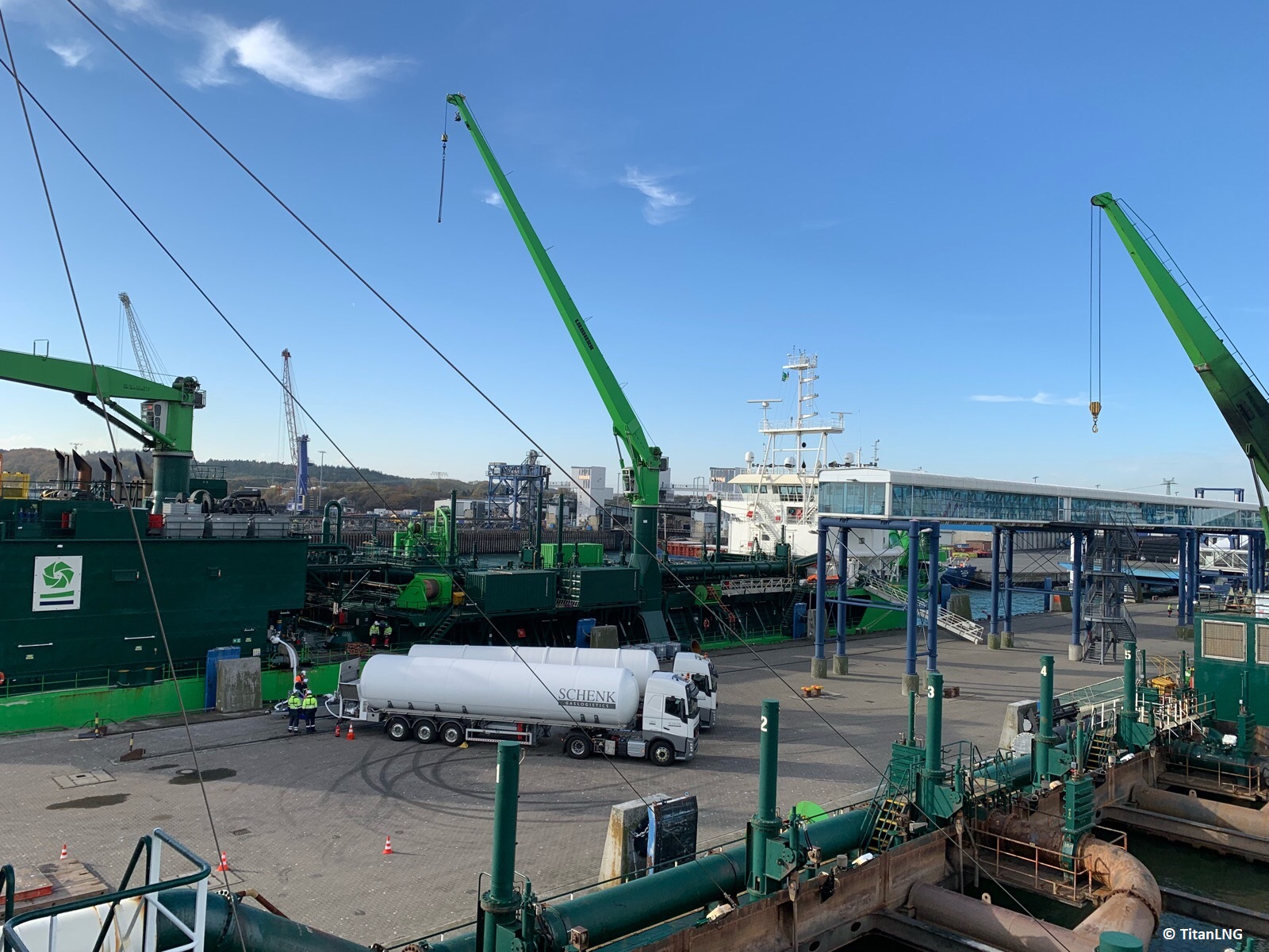 Den Artikel der Titan LNG finden Sie hier: http://titan-lng.com/de/erste-lieferung-von-titan-lng-im-deutschen-mukran-port-demes-baggerschiff-schiff-scheldt-river-erhaelt-lng-aus-7-lkw/