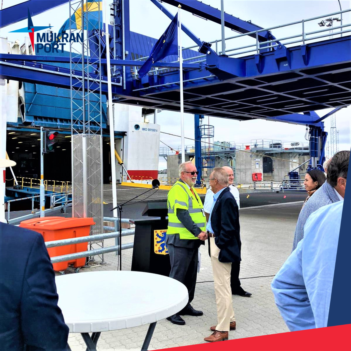 Sassnitz - Mukran, 29. August 2022 — Mukran Port besucht den Hafen Ystad zur offiziellen Einweihung des neuen Fähranlegers mit den Liegeplätzen 7 und 8. Nach der Begrüßung durch die Bürgermeisterin Paula Nilsson und den Geschäftsführer des Hafens Ystad Björn Boström, wurde die Plakette des Mukran Port überreicht. Die Kapazität des Hafens wurde mit den beiden neuen Liegeplätzen erweitert und ist für Schiffe bis 250 Meter geeignet. Die neu dazu gewonnene Terminalfläche beträgt circa 140.000 Quadratmeter.