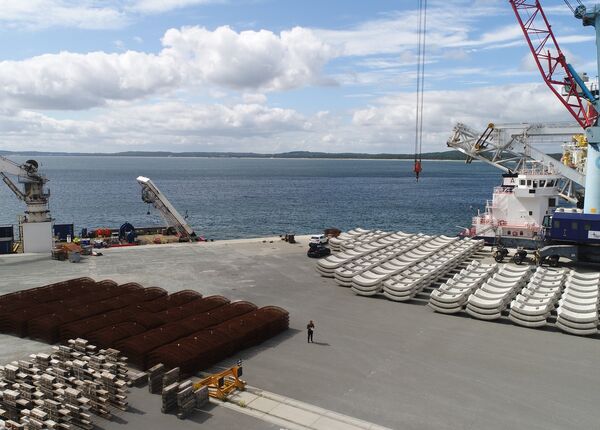 Mukran Industrial Site not only offers the best conditions for your production, but also for your logistics. Our transport, loading and handling equipment leaves nothing to be desired and is even designed for particularly heavy and bulky loads, such as pipes for pipelines. Ships can easily dock and undock at the quayside and pick up or unload cement, other aggregates, precast concrete parts or steel construction elements, even in huge dimensions. Once the goods are on board, the journey can start immediately without the need for cumbersome navigating of narrow channels. After all, we are Germany’s most northeastern deep-water port. The water is currently 10.5 metres deep. We are even planning to expand it to 14 metres in the short to medium term. Attractive markets in Scandinavia and the Baltic States can be reached by ship in one, or two days at the most.