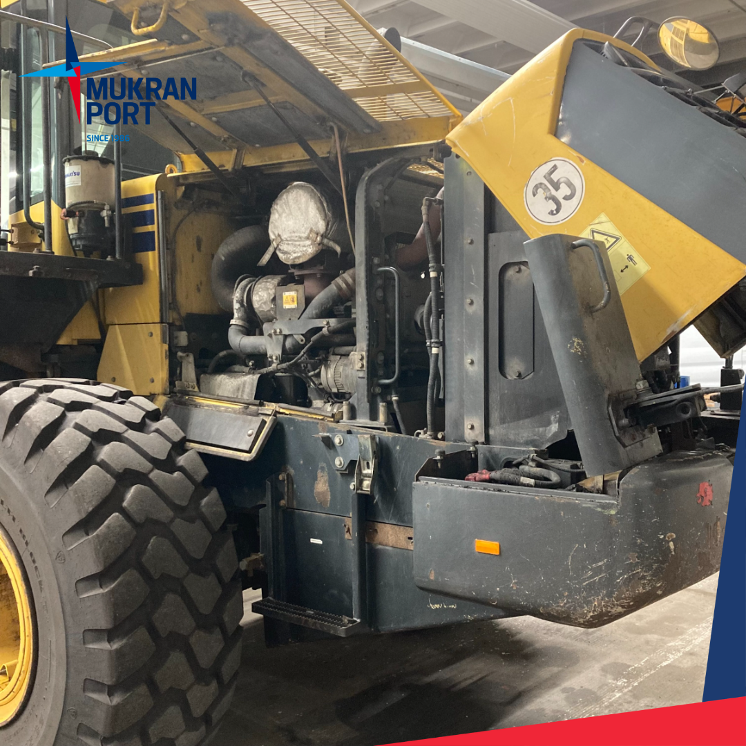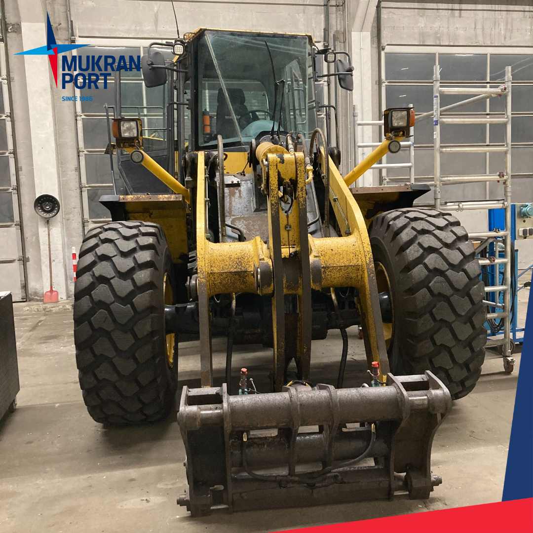 Sassnitz - Mukran, 05. Dezember 2022 – Until Friday last week, the KOMATSU wheel loader was a guest in the workshop of Mukran Port Terminals. In addition to replacing the defective windscreen, maintenance work wass also carried out, such as checking and replacing the air filter, which has to be checked regulary due to the dusty work at the terminal. The workshop team has worked through all the important points so the wheel loader returns to the terminal today.