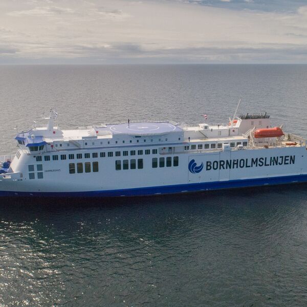 Sassnitz-Mukran, September 07 , 2018 - The danish shipping company Molslinjen took over the only direct ferry connection between Mukran and Roenne on 01 September 2018. This was the first change of operator on the route after 150 years. The shipping company Molslinjen offers the connection under the name Bornholmslinjen. The traditional area of passenger shipping in Mukran is to regain importance in the future and boost tourism on both islands. To illustrate these goals, the shipping company had a new ship built especially for this route. The 158 meter long "Hammershus" offers space for 720 passengers and thus twice as many as was possible with the old operator, the passenger car capacity also increases. "In recent years, we have proven that tourism and an industrial and business location are not mutually exclusive. Thanks to our favourable geographical location and the existing infrastructure, large passenger ships can also call at the port in addition to huge installation vessels for the construction of wind turbines," emphasised Thomas Langlotz, Commercial Director of Mukran Port. In addition to year-round ferry traffic, 5 times a week in summer and 3 times a week in winter, ticket prices also fall significantly.